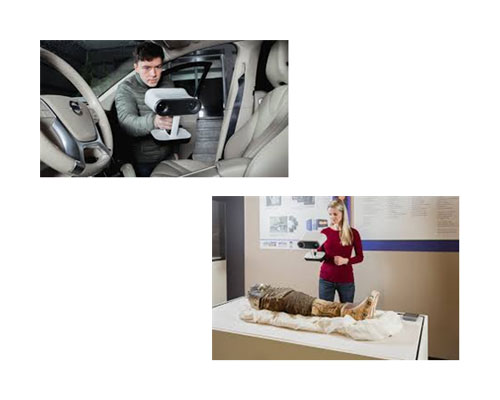 - 빛(백색 LED)을 이용하여 입체적인 사물을 스캐닝하는 방식으로 모델링 데이터를 취득 가능, 핸드타입으로 이동이 가능하며 빠르게 대상물의 컬러 3차원 데이터를 측정