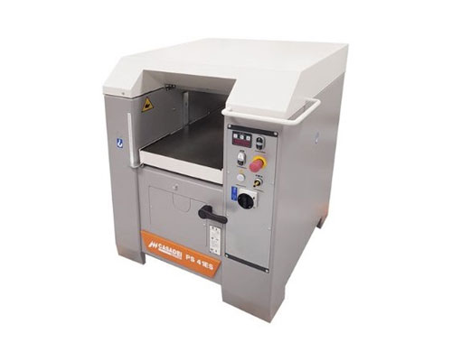 목재 상단을 커팅하는 구조의 장비로 높이와 각을 맞추어 표면 가공 작업을 진행.